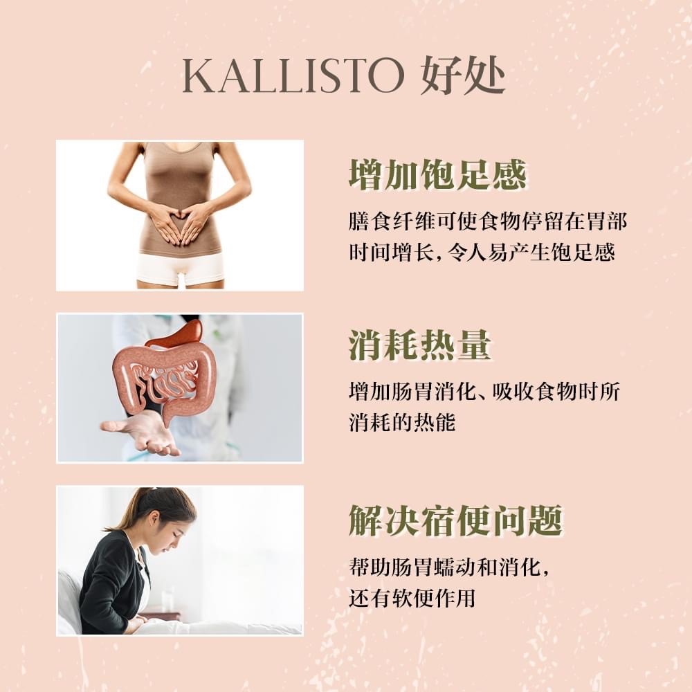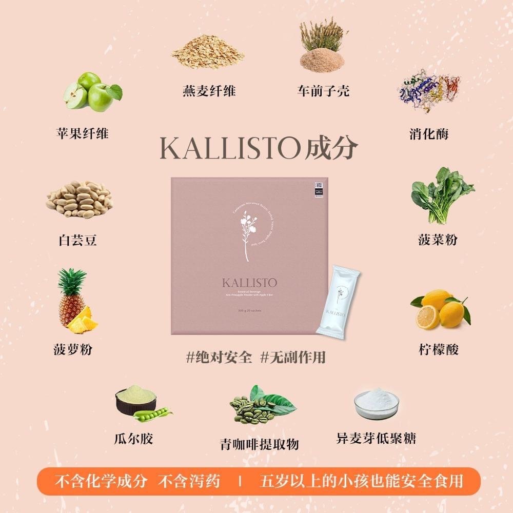 KALLISTO 采用100% 天然草本植物,纯蔬果类萃取,经过专业营养师团队多年的研发与改进,引进国外先进技术与成份,原材料主要来意大利,德国,印度,中国等国家,并在马来西亚进行调配与包装,产品荣获多项认证和奖项,接近十年的时间成功帮助无数顾客成功蜕变 ? 找回健康与自信